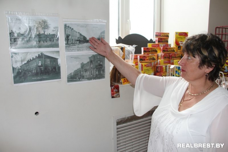 Татьяна Сергеевна показала нам фотографии старого Бреста и рассказала, что в 1944 году старый еврей содержал в этом здании публичный дом, тут же была табачная лавка, а в торце здания, где сейчас находится магазин женского белья «Милавица», долгие годы продавались галантерейные товары.