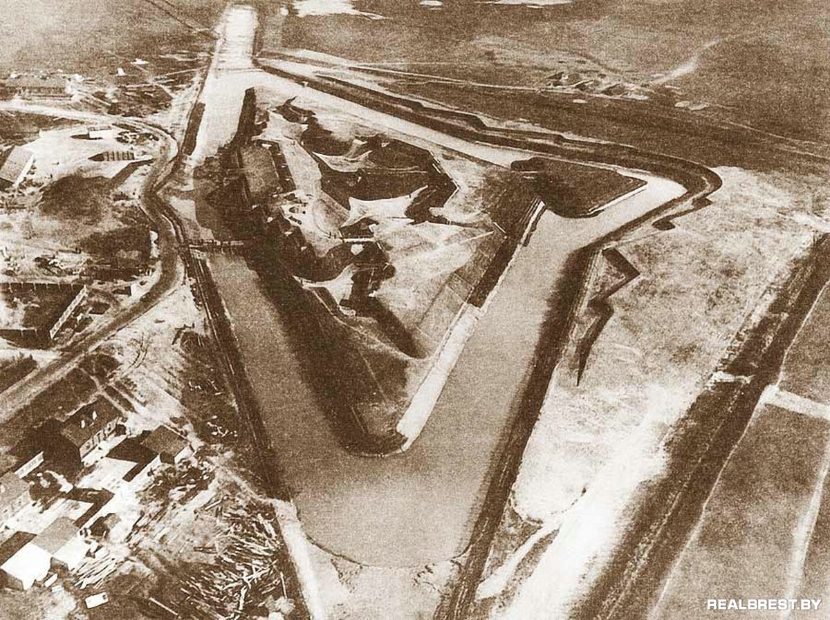 Форт Брест-Литовской крепости, лит Ж. Снимок сделан осенью 1914 года, во время полёта группы военных инженеров на дирижабле вдоль внешней линии фортов.