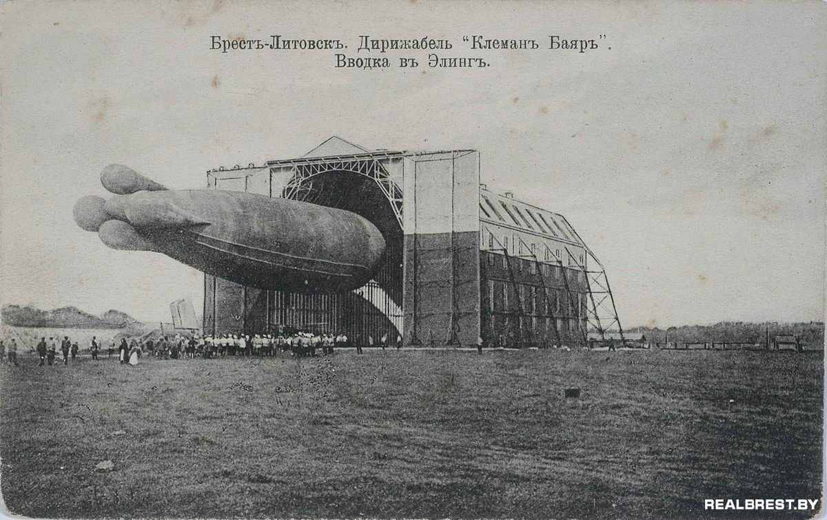 Ангар для дирижаблей (пролёт 45 м, высота 32 м) находился к востоку от Кобринского укрепления, за железной дорогой на Холм. Сегодня место, где был ангар, - это площадка на улице Гоголя, напротив музея паровозов.