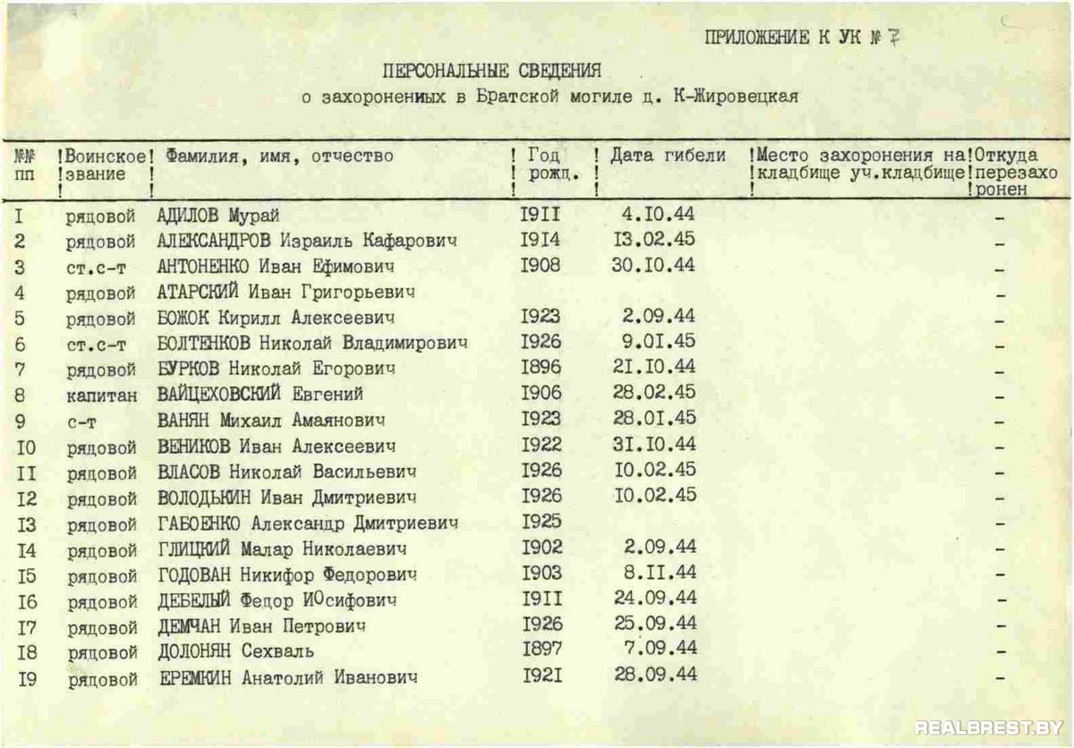 Братская могила Советских воинов погибших в июле 1944 г. при освобождении района от немецко-фашистских захватчиков (среди похороненных – воины 415-й стрелковой дивизии). Дата создания захоронения 2 сентября 1944 года, дата последнего захоронения 10 февраля 1945 г.