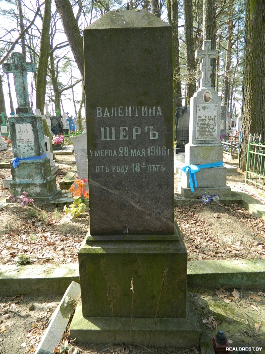 Единственный памятник, на котором встретилась сигнатура (В.Качанъ. Гродно), был памятник Валентине Шер, которая умерла 28 мая 1906 года, в возрасте 18 лет. Возможно, её отец был старший врач 151 – го пехотного Пятигорского полка, коллежский советник Семён Борисович Шер, проходивший службу в наших краях в то время.