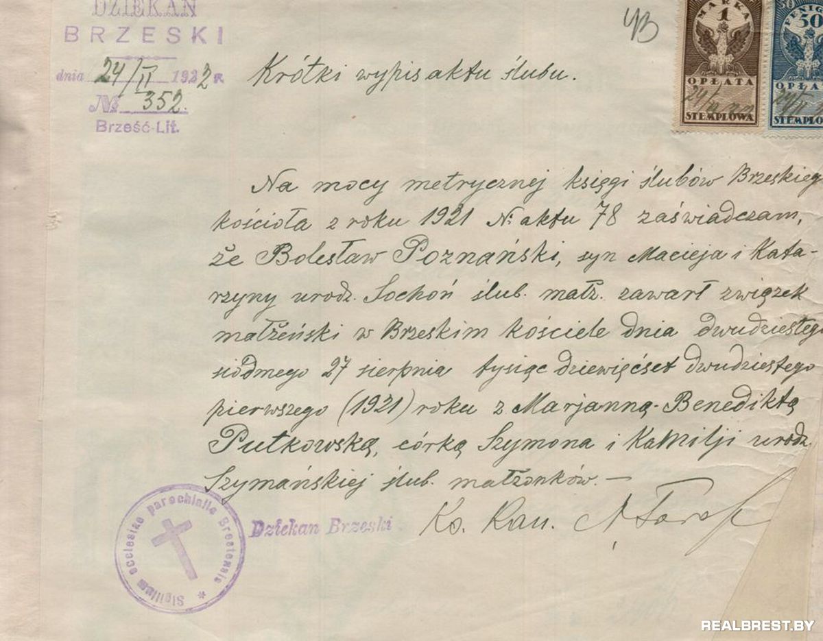 - Мой дед рассказывал, что когда они вернулись в Брест в 1919 году, жить было негде, не говоря уже о том, чтобы гулять свадьбы. Но тем не менее, создавались новые семьи, которые регистрировали брак в Магистрате. Свадебный наряд придумывали себе сами.