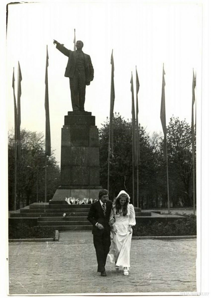 Так одна из невест 70-х рассказывала, как она пыталась сшить в одном брестском ателье пышное свадебное платье со множеством украшений, и ей не дали этого сделать. Закройщица ателье даже сделала девушке замечание: «Ты же не ёлка, чтобы тебя украшать! Надо быть скромной!». Еще многие помнят, как в период тотального дефицита после подачи заявления в ЗАГС невестам выдавались талоны, по которым они могли приобрести платье и туфли. В Бресте существовала традиция - в день свадьбы возлагать цветы к памятнику В.И. Ленина. А с открытием Мемориального комплекса «Брестская крепость-герой», традиционным стало посещение крепости с возложением цветов у вечного огня.