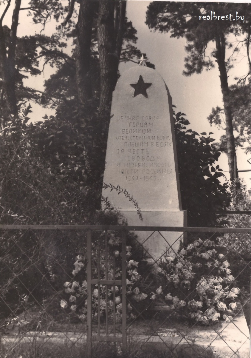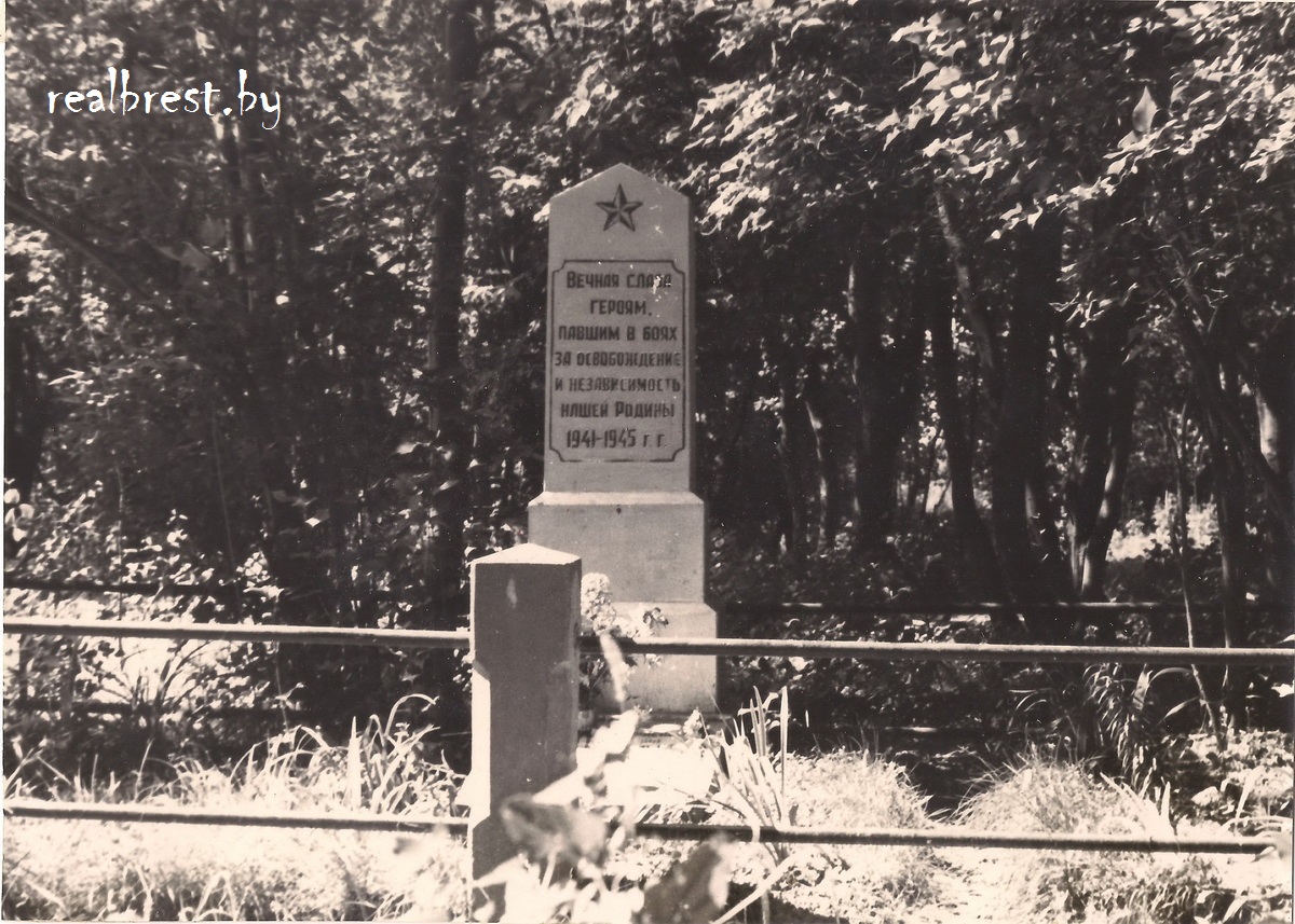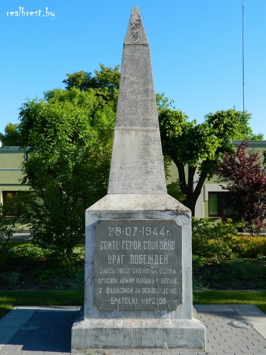 Воины 160-й стр. Краснознаменной дивизии (позже присвоено наименование "Брестская"). Среди похороненных - Герой Советского Союза Михаил Ефимович Александров. За время Люблинско-Брестской операции 160-я дивизия потеряла 328 человек убитыми и 1429 ранеными. За это время дивизия прошла с боями 138 км, освободила 176 населенных пунктов и во взаимодействии с частями 9-го стрелкового корпуса заняла город Брест.