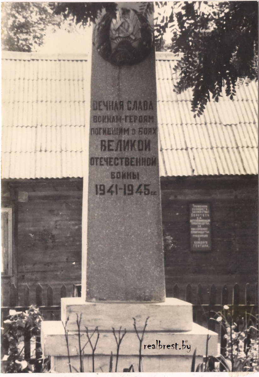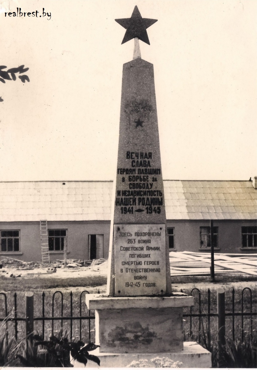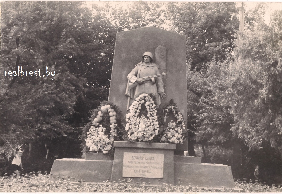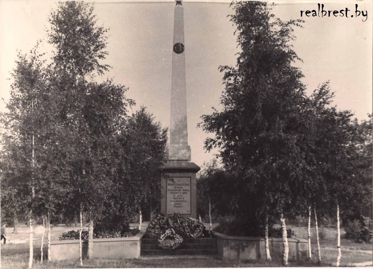 Воины 160-й стр. Краснознаменной дивизии (позже присвоено наименование "Брестская"). Среди похороненных - Герой Советского Союза Михаил Ефимович Александров. За время Люблинско-Брестской операции 160-я дивизия потеряла 328 человек убитыми и 1429 ранеными. За это время дивизия прошла с боями 138 км, освободила 176 населенных пунктов и во взаимодействии с частями 9-го стрелкового корпуса заняла город Брест.