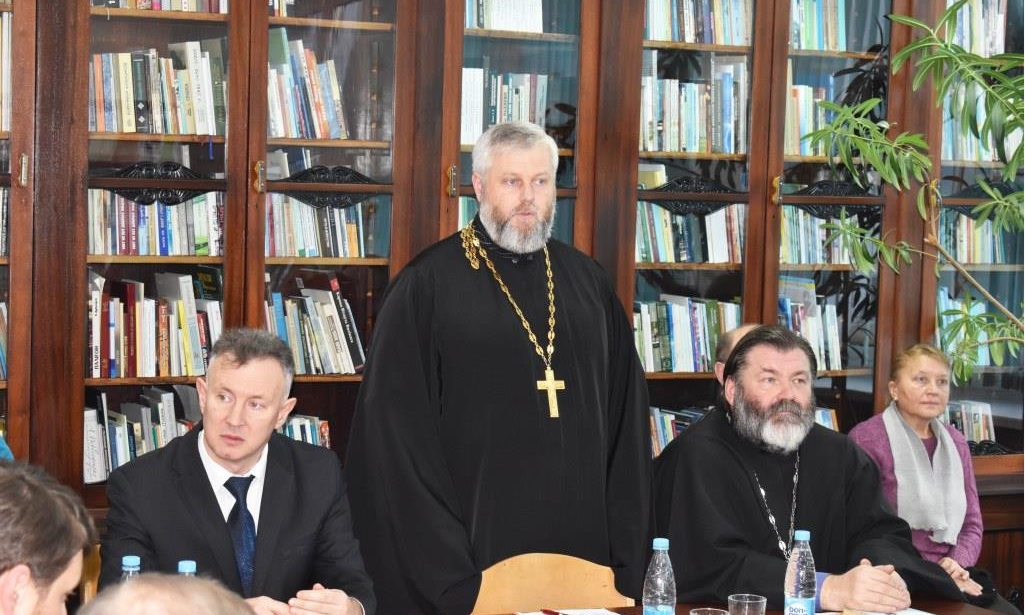 Она поблагодарила Брестскую епархию и лично Владыку Иоанна, Архиепископа Брестского и Кобринского, за содействие этому форуму и передала слово модератору встречи Александру Свириду, доценту кафедры истории славянских народов БрГУ, кандидату исторических наук, отметив давнее и прочное сотрудничество с историками университета.