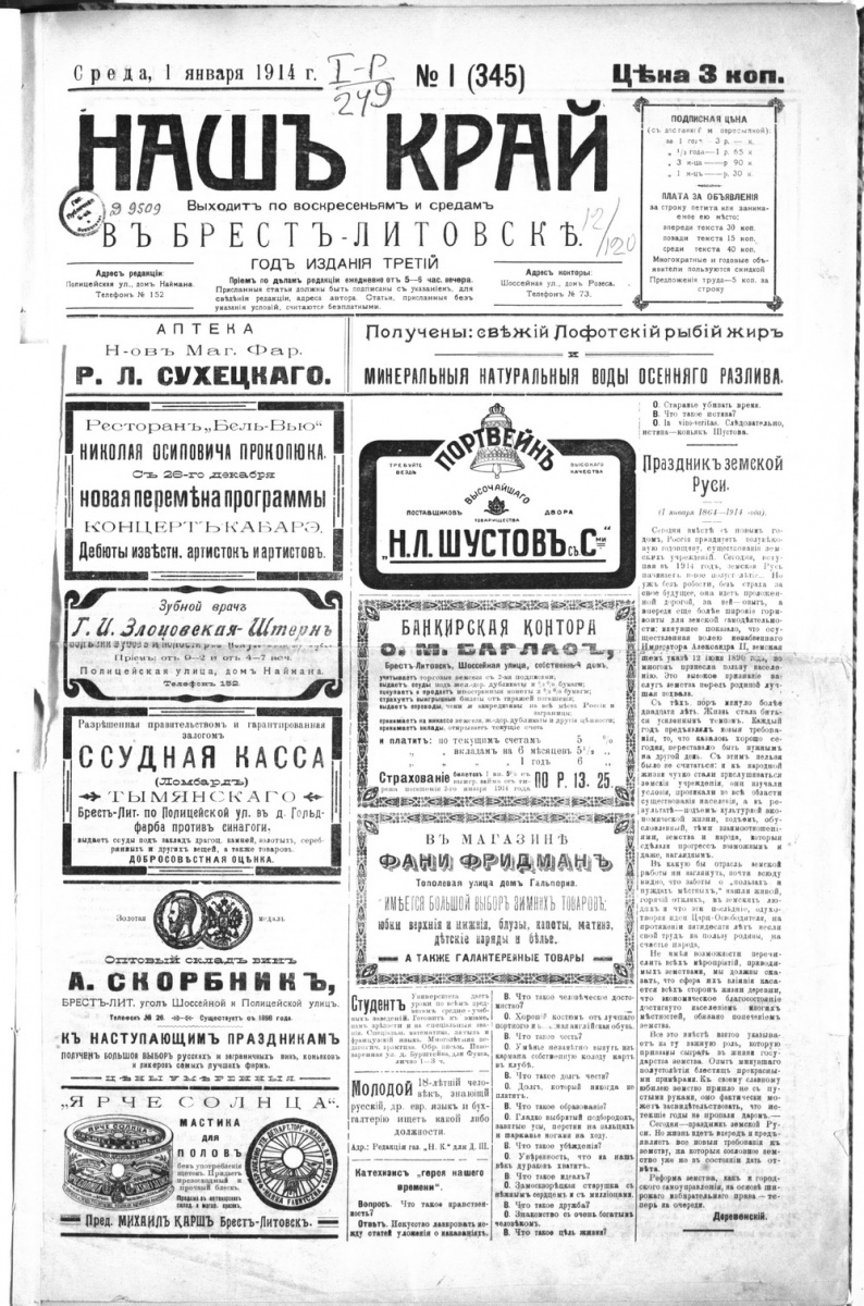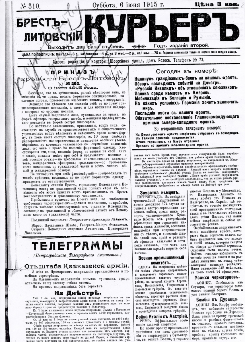 И пошелестим страницами выходивших в Брест-Литовске газет, сканы которых получены из архивохранилищ Санкт-Петербурга и Гродно.