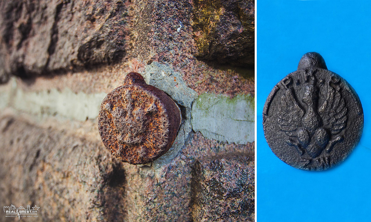 Сохранилась ли сегодня эта традиция, не известно, но в 90-е годы прошлого века у студентов брестского педагогического, тогда еще института, такая существовала. Перед сдачей экзамена или сессии необходимо было потереть на удачу польского орла, который изображен на двух небольших металлических знаках перед входом в старый корпус БрГУ. Что они означают, когда и почему появились на фасаде корпуса старой гимназии?