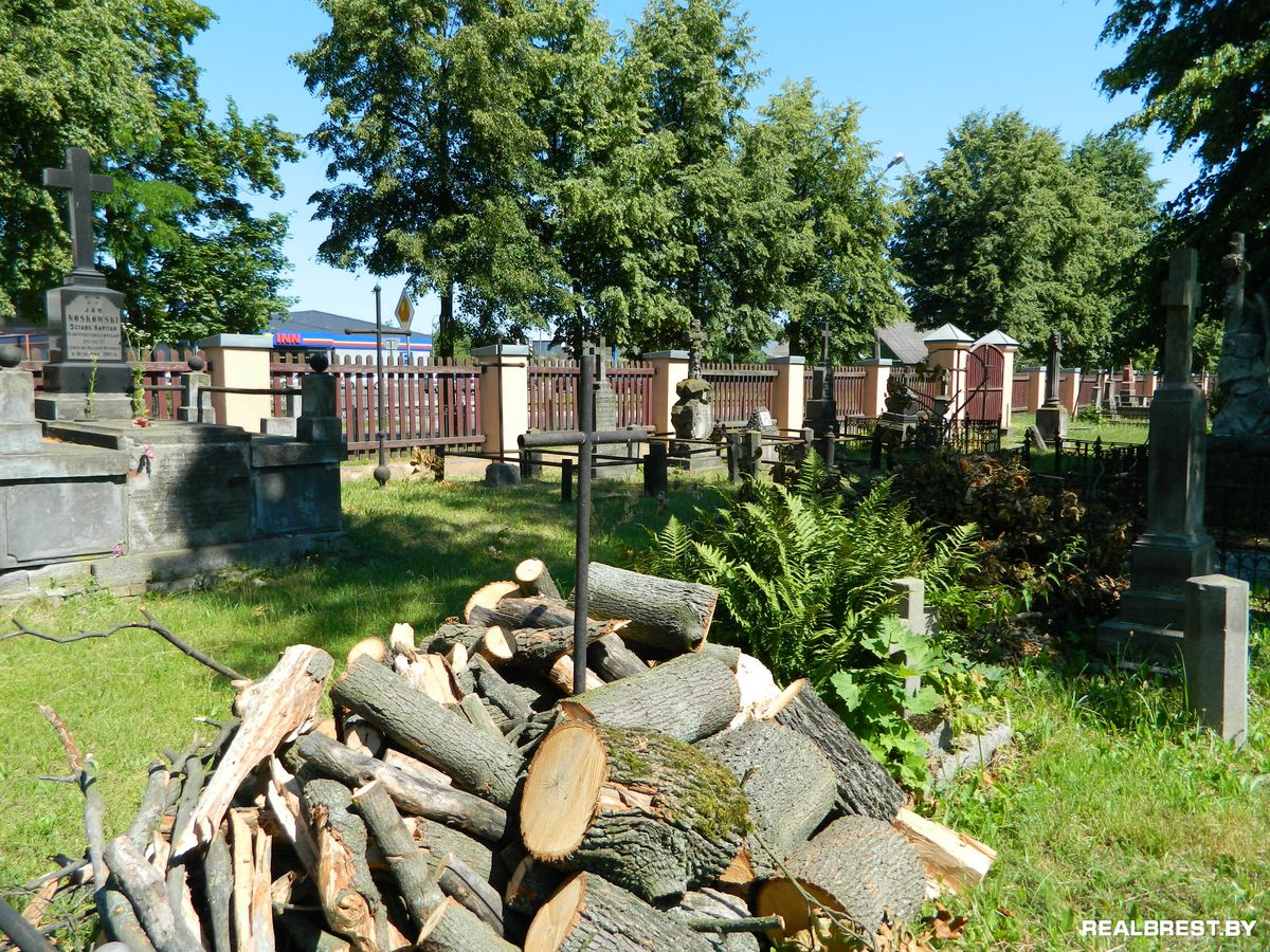 Прошедшие над нашим городом в последние недели природные ненастья так же нанесли урон некрополю, было разрушено несколько надгробий повалившимся деревом. Но как можно было догадаться сложить обрезанные поленья вокруг одной из могил? Ведь это может привести к разрушению памятника.