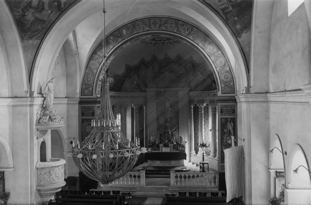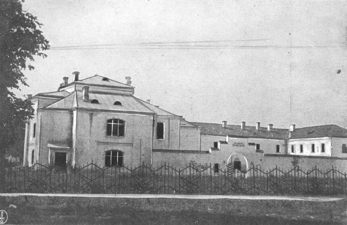 Отель на переднем плане и Свято-Николаевская братская церковь, года 1921–1939. Ощущение будто это широкая пешеходная улица в центре города — не видно тротуаров или проезжей части.