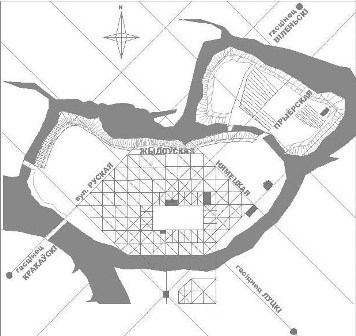 Улица Ковальская и восточная сторона рынка в конце XVII-начале XVIII века. Реконструкция автора