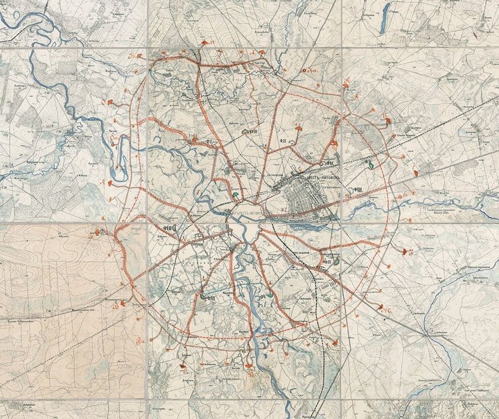 Карта крепости Брест-Литовск с двумя обводами фортов