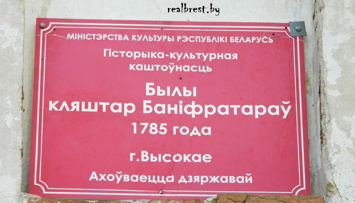 Здание бывшего монастыря бонифратров в Высоком включено в список историко-культурных ценностей Республики Беларусь. Здание склада-гаража (наименование недвижимого имущества) продается за 83 410 000. Предлагается использовать для размещения объектов промышленного производства, общественного питания, торговли, услуг, срок аренды – 50 лет. Продавец недвижимого имущества – отдел образования, спорта и туризма Каменецкого райисполкома.
