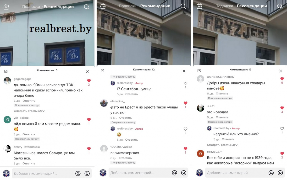 Несмотря на то, что местные читатели и зрители часто критикуют «Реальный Брест» за повторения пройденного материала в видеороликах, которые далеко за пределами нашего края популяризируют богатый на исторические события Брест, мы продолжаем успешно выполнять эту просветительскую и образовательную работу на самых популярных видеохостинговых площадках YouTube и TikTok.
