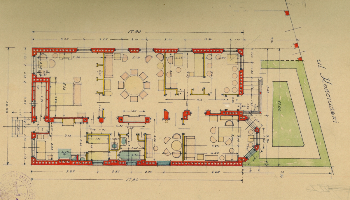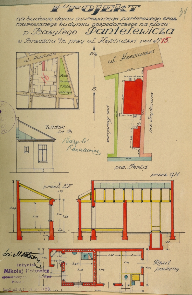 А вот изначальные проектные чертежи этого здания, хранящиеся в Госархиве Брестской области: