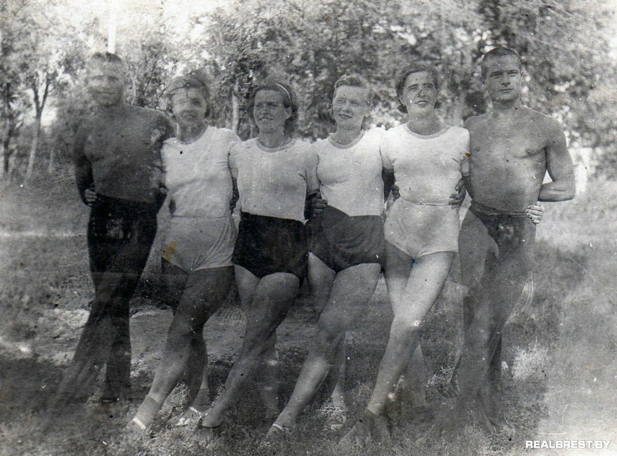 Участники спортивной команды 17-го Краснознаменного пограничного отряда. Вторая слева – Мария Владимировна. Брест. 1940 г.