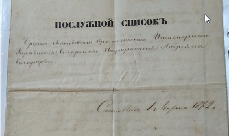 Есть послужной список Капитона, но он неполный, и свидетельство. Так назывались тогда прототипы трудовых книжек. В биографии Капитона есть интересные факты: он, как и его отец, то награждался, когда служил, то был отставлен, то получал награды, то терял право на них и на первоклассные чины (выпивал и отбрыкивался, как мог, от неблаговидных поступков Власти и Армии).