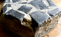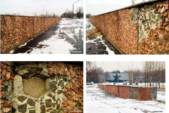 Для изготовления плит использовался щебень из гранита, базальта, кварцита, полевого камня. На дно железные формы сначала помещался вручную крупный щебень, а затем форма заполнялась бетоном из более мелко измельченного камня.