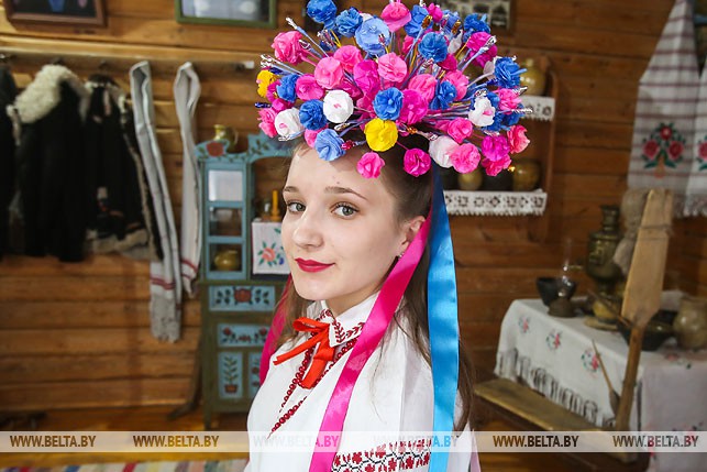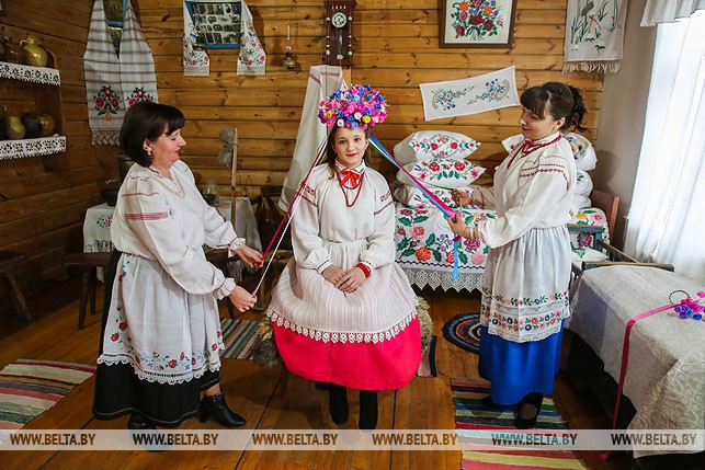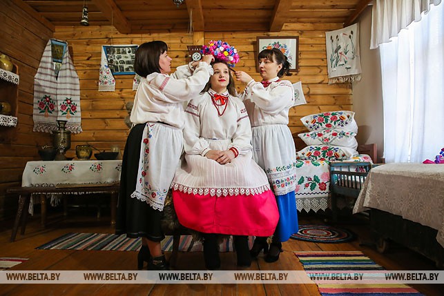 Роль бездежской невесты на себя примерила старший научный сотрудник музея Екатерина Кудрицкая. Она терпеливо сидела "на деже" все то время, пока коллеги колдовали над ее нарядом. "Венок придавал невесте величества. Нужно было идти плавно, с высоко поднятой головой, ровно держать спину. Носить "паву" нелегко: нужно иметь большую выдержку", - заключила девушка.