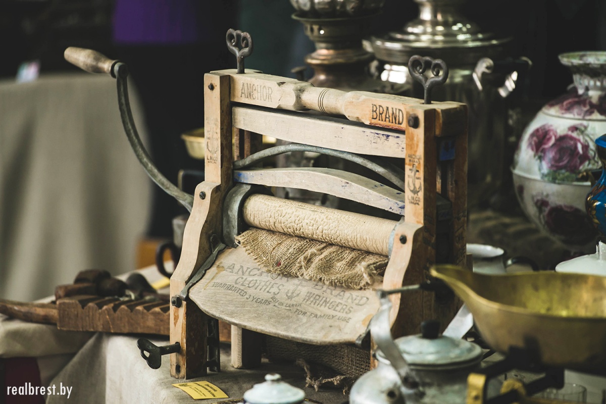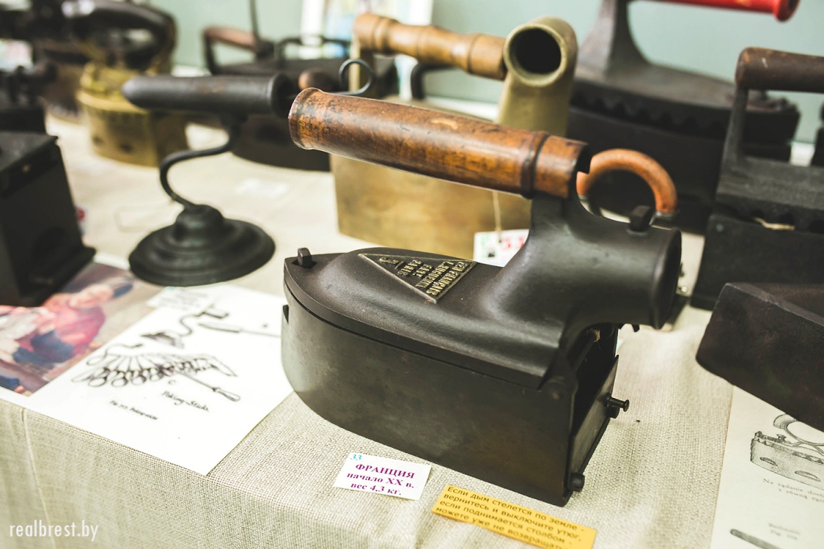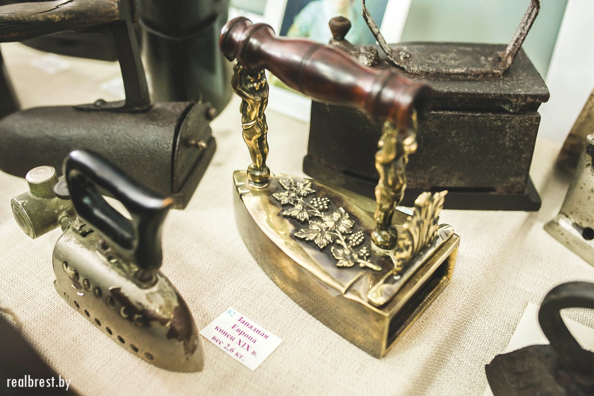 На выставке представлены более 50 утюгов из частной коллекций Олега Зубаря, старинные самовары и весы из коллекции Сергея Гриня, аутентичные предметы домашнего быта из собраний музея «Брест театральный» и фонда «Фортификации Бреста».