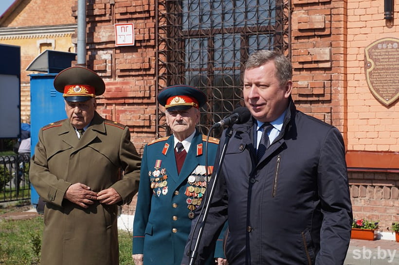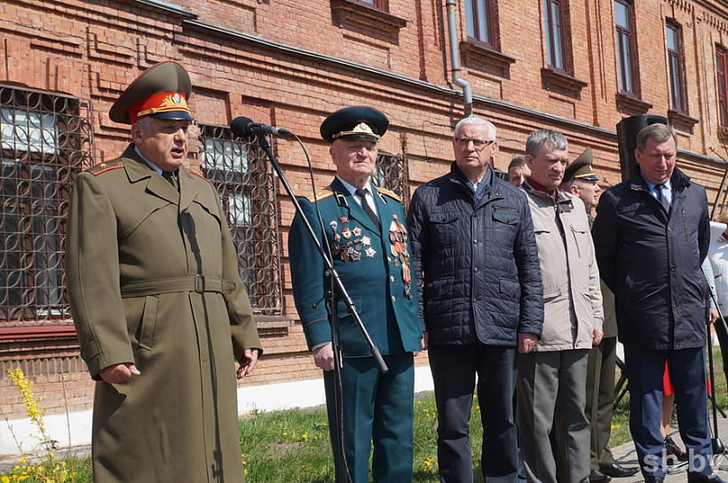 Вместе с Валерием Губаренко мемориальную доску открыли ветеран дивизии, участник Великой Отечественной войны Василий Березнев и председатель Брестского горисполкома, полковник в отставке Александр Рогачук.