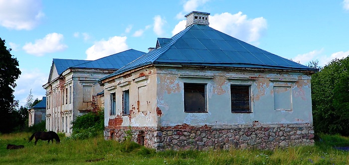 Недвижимая историко-культурная ценность «Будынак былога палаца» - капитальное строение (здание школы), кирпичное, площадь – 1635,1 кв.м., 1836 г.п., 2-этажное, 1 подземный этаж, 4 крыльца, фрагмент ограждения, лестницы, подпорная стенка, столовая с тремя пристройками, котельная, покрытие.