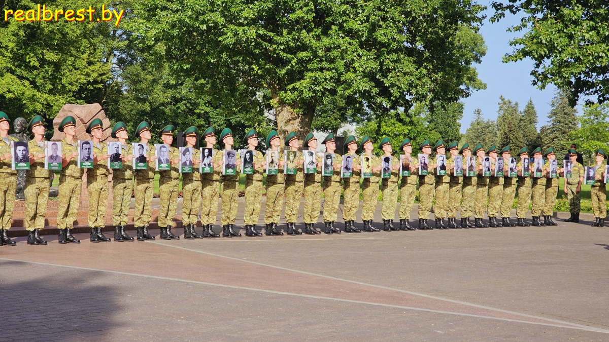Первокурсники Института пограничной службы Беларуси провели боевой расчет с портретами погибших пограничников Белорусского пограничного округа.