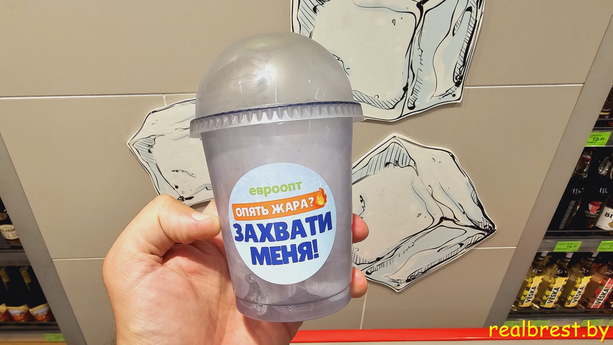 В белорусских магазинах сети Еврооопт начали продавать не только лед в стаканчиках и в пакетах весом 1 кг.
