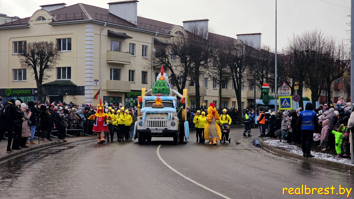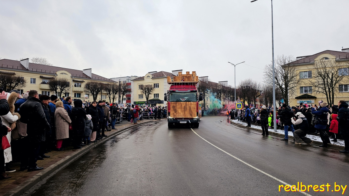 Следом за ними следовала платформа, на которой воссоздали Кобринский замок с историческими персонажами на борту, которые прославили город.