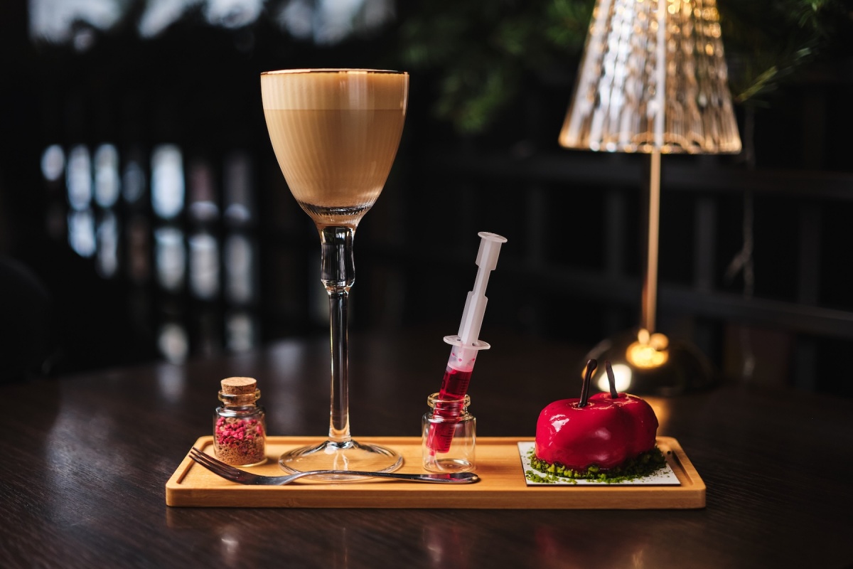 ●Cherry coffee на основе бразильского эспрессо со вкусом горького шоколада, карамели и фундука с добавлением вишневого сиропа и сублимированных фруктов, 240 мл