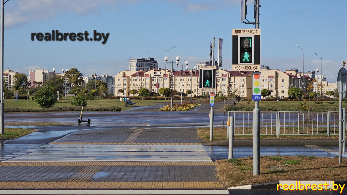 В Бресте появились специальные информационные таблички, указывающие на то, что велосипедистам и водителям средств персональной мобильности при наличии разрешающего сигнала светофора можно пересекать проезжую часть дороги не спешиваясь.