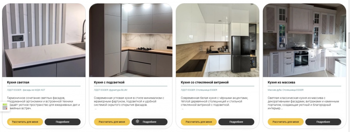 Мы используем только качественные и проверенные материалы: ЛДСП, МДФ, шпон, массив и современные влагостойкие покрытия. Фурнитура — европейских брендов с гарантией и мягким закрыванием.