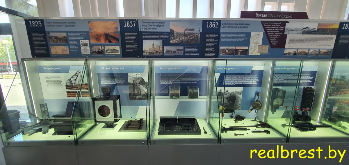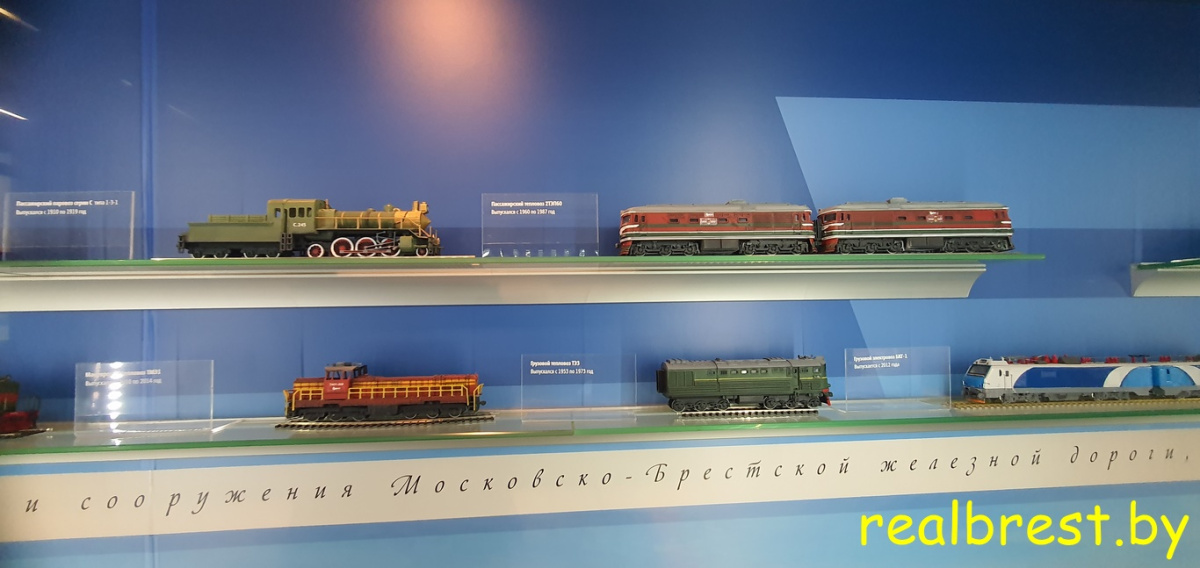 Экспозиция Брестского железнодорожного музея посвящена истории и традициям железнодорожного транспорта Беларуси.На площади почти в три гектара под открытым небом располагается порядка 70 единиц железнодорожной техники:локомотивы, паровозы довоенного, военного и послевоенного времени, тепловозы, паровые краны, коллекция пассажирских вагонов 1903-1940 годов, санитарный и штабной вагоны, вагон с зенитной установкой, вокзальные электрические часы 1953 года, железнодорожный станционный колокол и много других редких экспонатов.