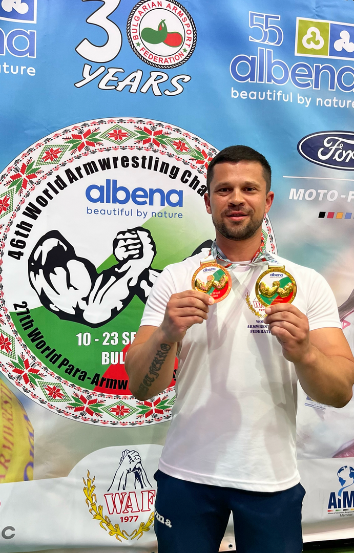 Виктор Братченя по пара-армрестлингу в весовой категории до 80 кг завоевал 2 золотые медали.
