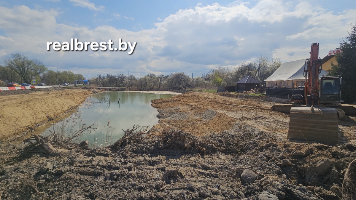 Первый этап уже можно увидеть с дороги: там начали убирать небольшой водоём, который мешает строительству.
