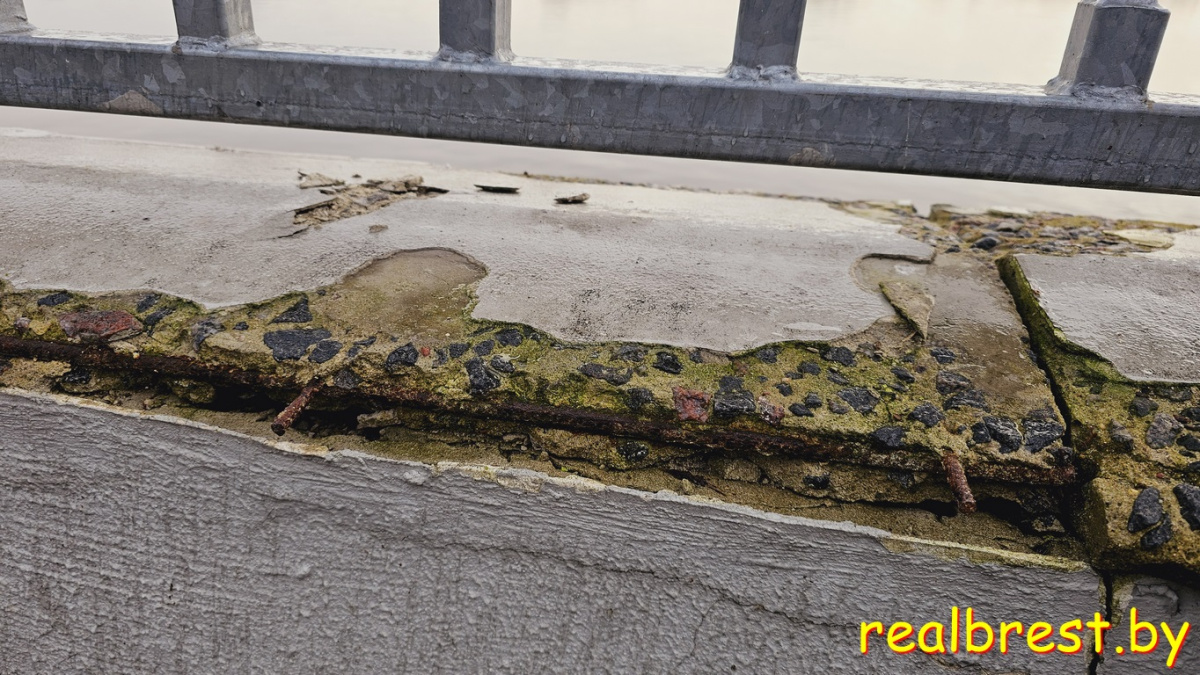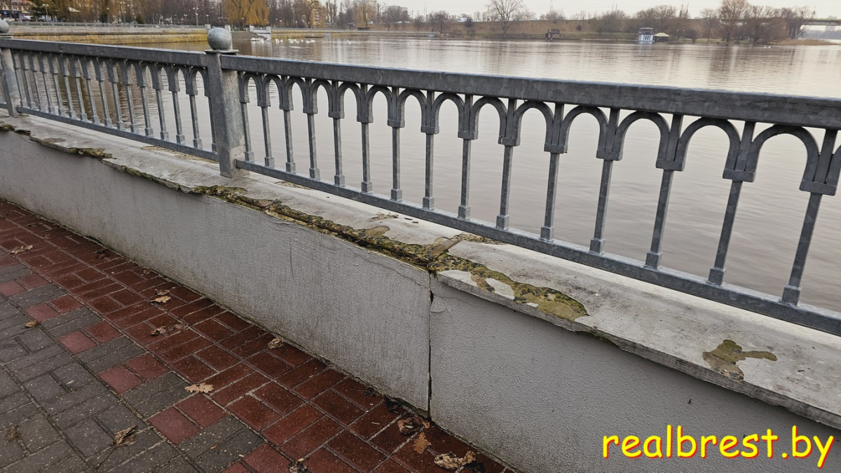 Больше всего, конечно, возникает вопросов к состоянию парапета на набережной в Бресте в первую очередь из-за того, что ржавые металлические конструкции могут представлять угрозу безопасного посещения рекреационной зоны для детей.
