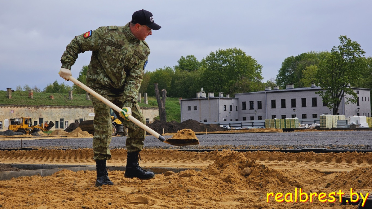 Субботник проходит на территории строительства Республиканского центра патриотического воспитания молодежи на базе Кобринского укрепления Брестской крепости.