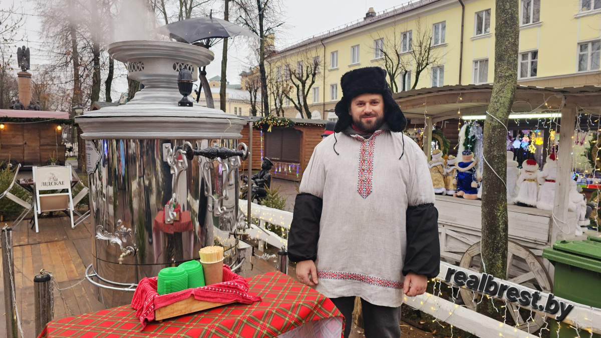 Самый большой в Беларуси самовар вновь установлен на новогодней ярмарке в Бресте.