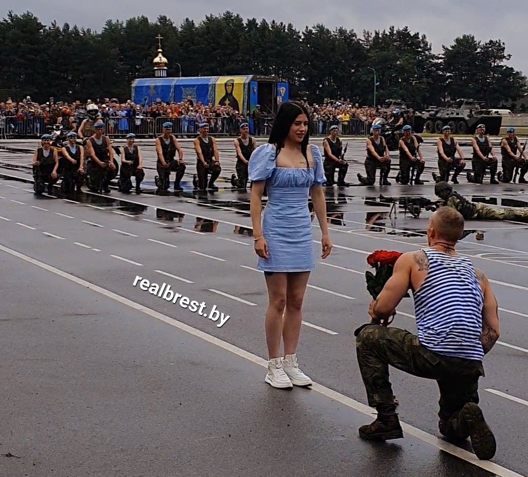 2 августа в Бресте на территории 38 отдельной десантно-штурмовой бригады десантники отпраздновали День десантников и сил специальных операций. Во время показательных выступлений один из десантников сделал своей девушке предложение руки и сердца.