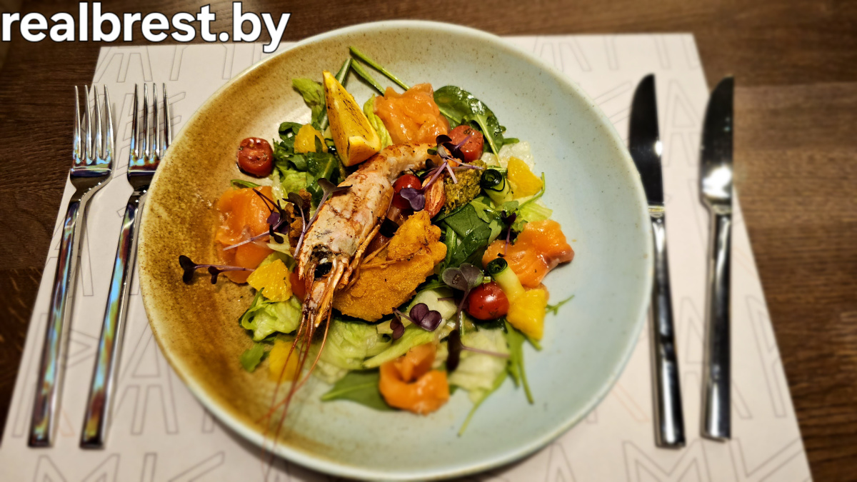Новое заведение позиционирует себя больше в разнообразии мясных блюд, но «Реальный Брест» нашел в меню несколько рыбных.