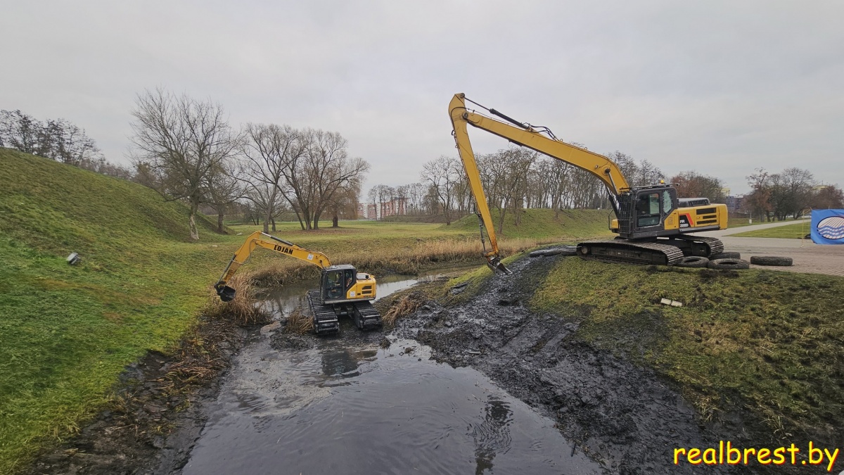 Работы по очистке обводного канала производятся с участием коммунальных служб города с привлечением уникальной специализированной техники УП «Брестводстрой».