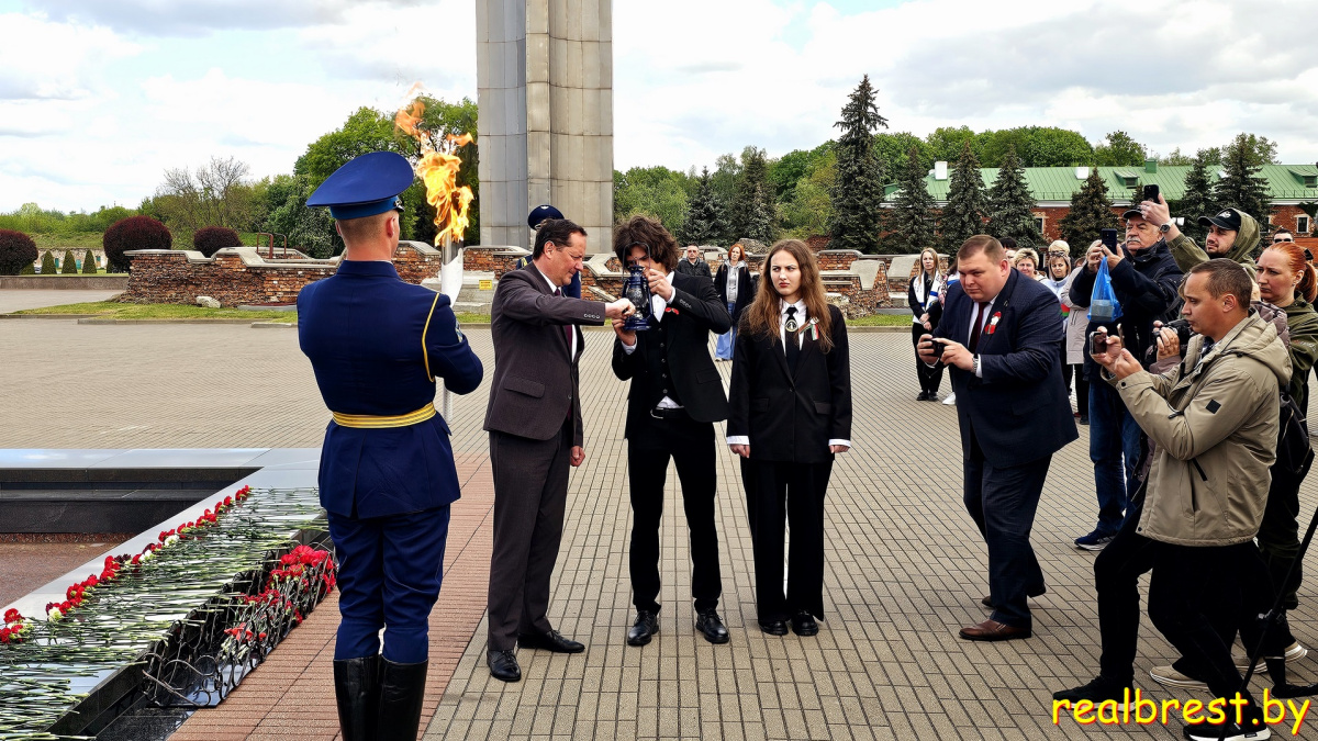 В день 60-летия присвоения Брестской крепости статуса «крепость-герой» учащаяся УО «Столинская государственная гимназия» Полина Вишневская и учащийся ГУО "Средняя школа №3 г.Столина" Андрей Кондер приняли частичку Вечного огня «Брестской крепости-герой» от которой завтра, в День Победы, будет зажжен Вечный огонь в городе Столин.