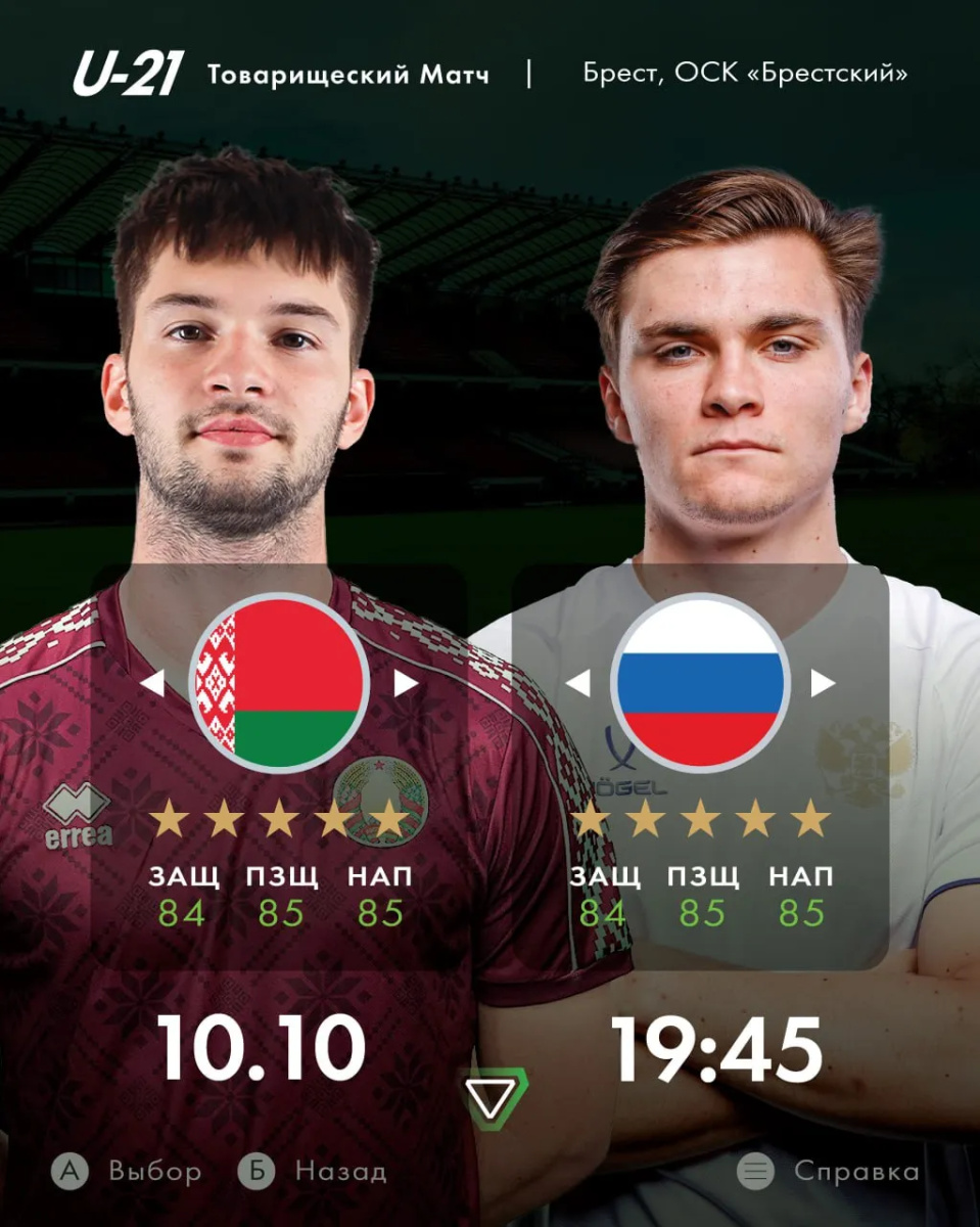 19:45 — товарищеский матч U21 Беларусь — U21 Россия. Вход свободный!