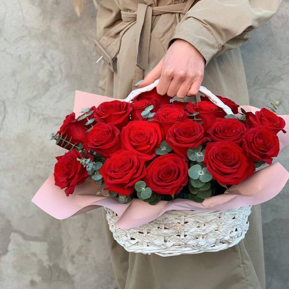 - День Святого Валентина: Выразите свою любовь и романтику с помощью цветочной корзины с красными розами, тюльпанами или герберами. Добавьте романтические аксессуары, такие как сердечки и ленты.