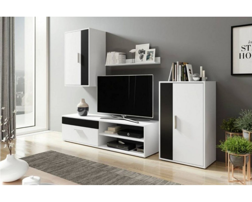 Завершает гарнитур мебельная стенка, которая обычно устанавливается напротив дивана. Стенки для гостиной всегда имеют смешанные фасады: часть секций открыта или укомплектована стеклянными дверцами, иногда в них присутствует подсветка. В этих секциях стоят интерьерные статуэтки, элементы декора, фотографии и другие красивые вещицы, создающие настроение и подчеркивающие стиль помещения.