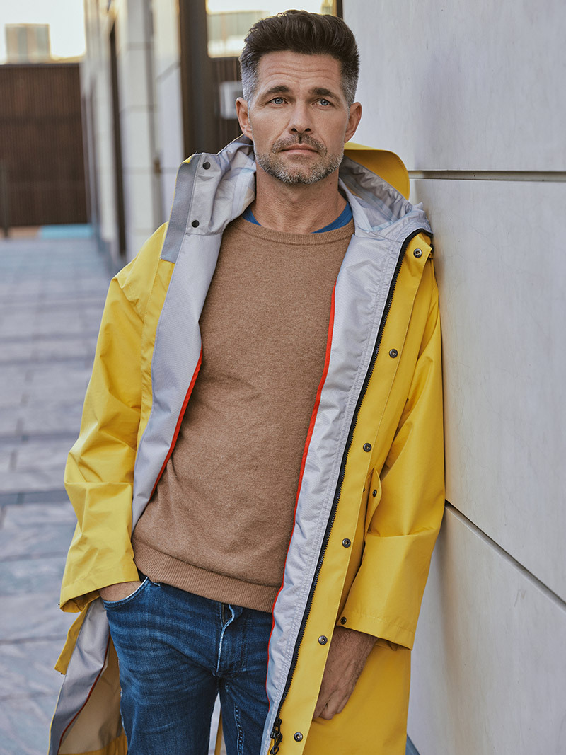 Современные мужчины ведут активную жизнь — работают, занимаются спортом, выезжают на природу, гуляют с детьми, выгуливают собак, катаются на велосипеде. Для всего этого нужна комфортная одежда, в которой будет хорошо продолжать свою привычную жизнь даже в непогоду. Осенью в Петербурге под это описание попадает практически каждый день, а значит, эта одежда должна быть еще и стильной — чтобы с уверенностью гулять по улицам одного из самых красивых в мире городов.