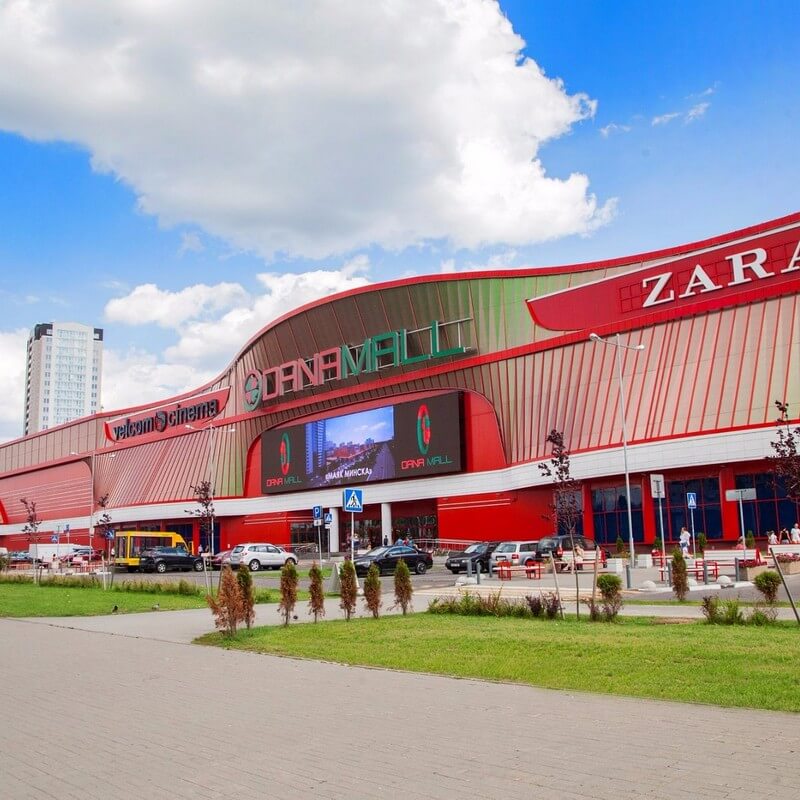 Огромный торговый центр, в котором нашлось место для магазинов более 100 брендов. Примечательно, что здесь остались торговые точки производителей, которые ушли из России: «Zara», «Zara Home», «New Yorker», «Massimo Dutti», «Puma», «Stradivarius», «Adidas», «Bershka». В бутиках местных производителей можно найти оригинальные вещи по демократичным ценам. Например, футболки и толстовки «Mark Formelle» с задорными надписями на белорусской мове, или обувь «Marko» из натуральной кожи. «Беларускi Лён» – магазин экологически чистого текстиля для дома, женской и мужской одежды. Здесь можно купить качественные и натуральные вещи в подарок близким. «Bell Bimbo» – бренд белорусской одежды для детей.