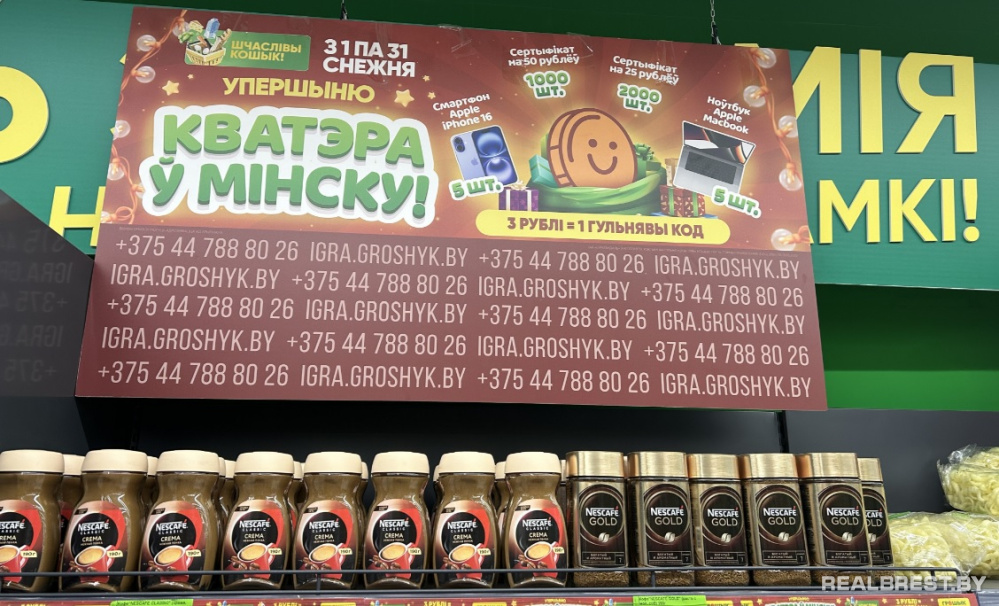 В сети дискаунтеров «Грошык» стартовала игра «Шчаслiвы кошык!» с более чем 3000 призов. Покупатели могут выиграть смартфон Apple iPhone 16, ноутбук Apple MacBook Air или квартиру в Минске. Розыгрыши будут проходить каждую неделю.