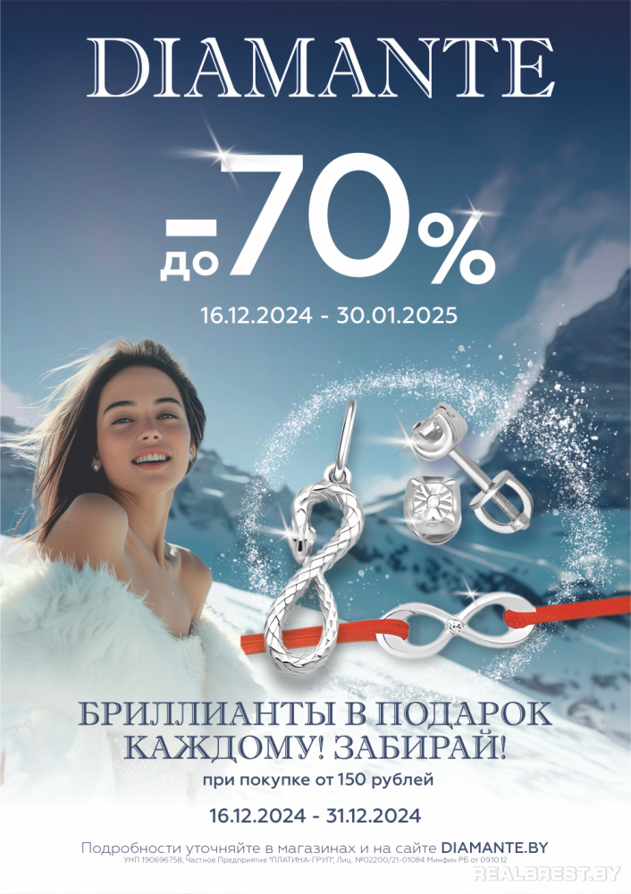 «Такого мы еще не делали. Украшения с бриллиантами получат от нас все, кто до конца года совершит покупку от 150 рублей в чеке (кроме покупки сертификатов). Подарков должно хватить всем – мы основательно подготовились. Как правило, на предновогодние дни приходится пик продаж: белорусы выбирают подарки для родных и близких. И мы в этом хотим им помочь – как скидками до 70%, так и украшениями с бриллиантами», – отмечают в сетях «7 КАРАТ» и DIAMANTE.