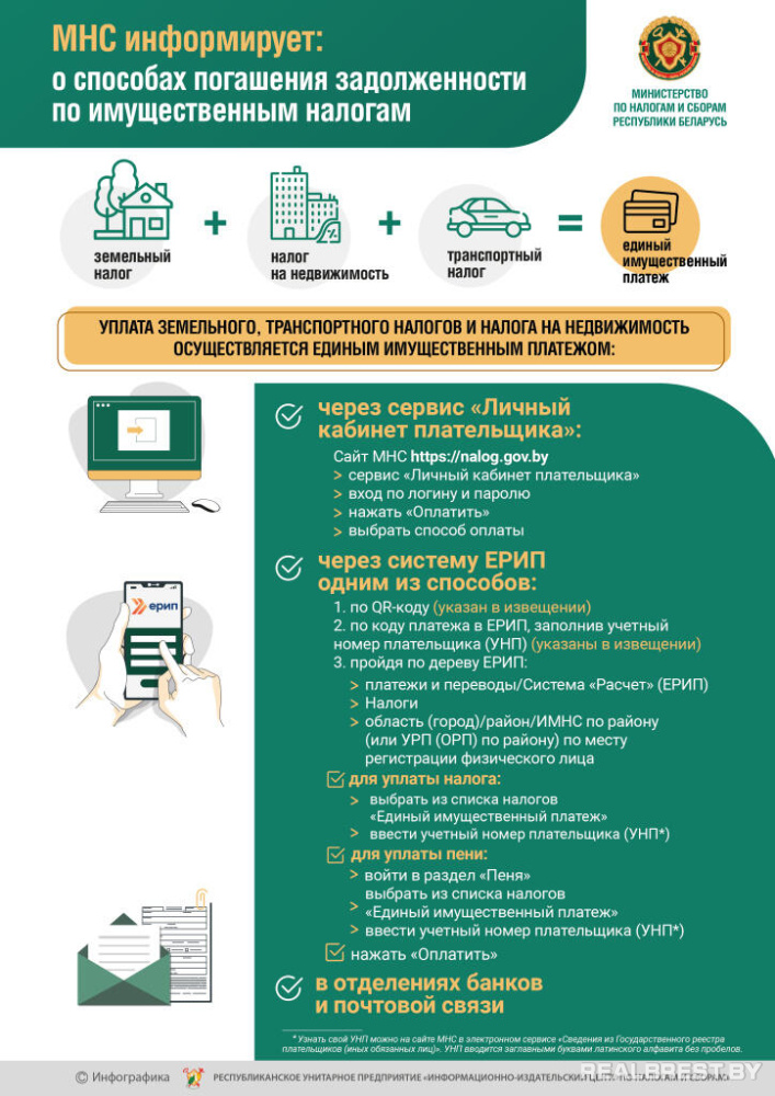 В Министерстве по налогам и сборам (МНС) рассказали белорусам о способах погашения задолженности по имущественным налогам.